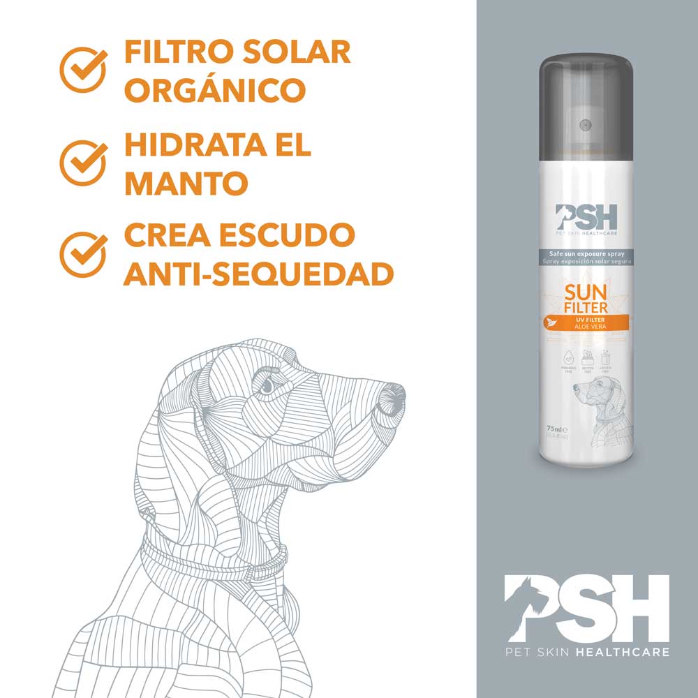 PSH SUNN FILTER veitir feldinum vörn gegn skaðlegum útfjólubláum geislum frá sólinni, og er þess vegna fullkomin vara til að vernda hundinn þinn. Gefur feldinum glæsilegan blæ og viðheldur raka.